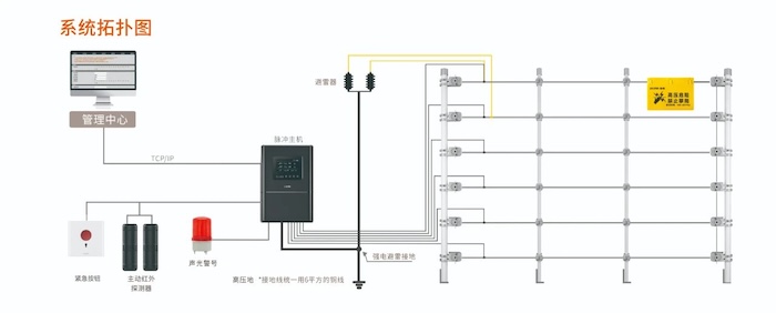 In case of forced intrusion, the electronic fence will provide a pulse high-voltage strike within the safe energy range, warning illegal intruders and shaking their ability and motivation to climb over the fence. At the same time, the system emits a high decibel sound alarm on site and is linked with other security systems (such as alarm hosts, monitoring systems, etc.) to achieve the purpose of safety obstruction.
