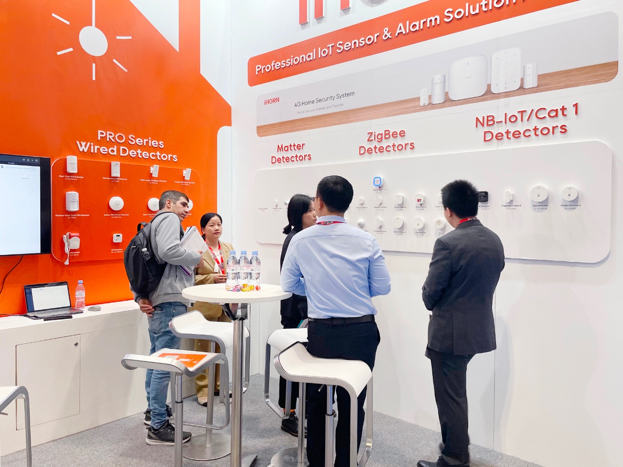 中安科子公司iHORN豪恩驚艷亮相S3-S6 No.IF3837展位,向全球重點展示了iHORN豪恩LHD8100家庭安全系統、Pro系列有線探測器、Matter系列探測器、Zigbee系列探測器、NB-IoT/Cat 1系列探測器等五大安防系列產品,備受客戶青睞,成為現場關注焦點。