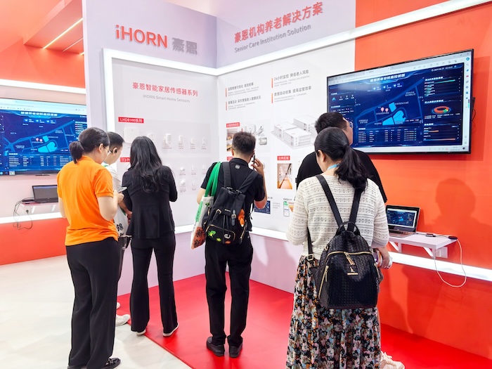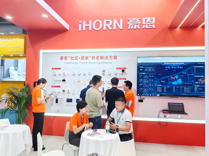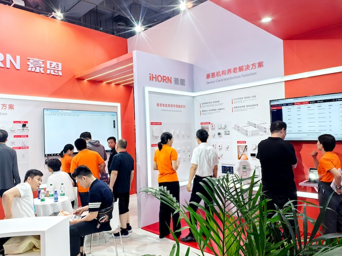 展會現場,豪恩全方位展示了居家安全防護系列、呼叫告警系列、定位穿戴系列、健康監護系列在“社區+居家養老”、“機構養老”等多領域的場景應用,吸引了眾多參展商和觀眾來展位體驗參觀。