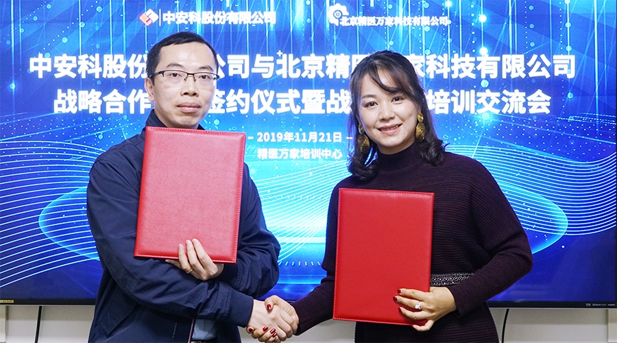 近日,中安科股份有限公司(以下簡稱中安科)與北京精醫萬家科技有限公司(以下簡稱精醫萬家)在“精醫萬家培訓中心”舉行了戰略合作協議簽約儀式暨戰略合作培訓交流會。