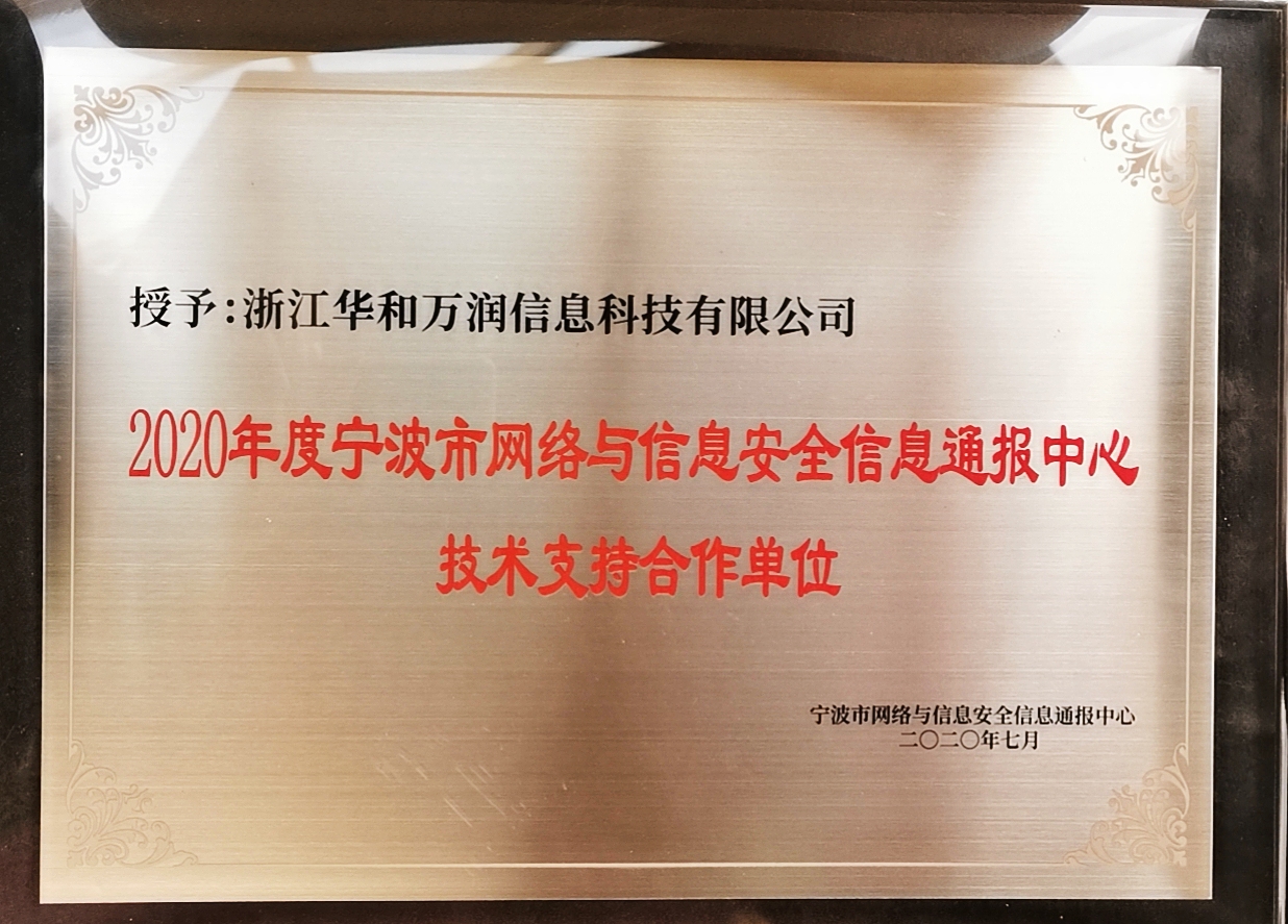 近日,由中共寧波市委網(wǎng)信辦、寧波市大數(shù)據(jù)發(fā)展管理局指導(dǎo),寧波市計(jì)算機(jī)信息網(wǎng)絡(luò)安全協(xié)會(huì)主辦的《2020 寧波市信息網(wǎng)絡(luò)安全高峰論壇暨寧波市計(jì)算機(jī)信息網(wǎng)絡(luò)安全協(xié)會(huì)全體會(huì)員大會(huì)》,在寧波成功舉辦。中安科股份成員公司 — 浙江華和萬(wàn)潤(rùn)信息科技有限公司(以下簡(jiǎn)稱“華和萬(wàn)潤(rùn)”)憑借其在網(wǎng)絡(luò)安全領(lǐng)域的優(yōu)異表現(xiàn),榮獲「2020年度寧波市網(wǎng)絡(luò)與信息安全信息通報(bào)中心技術(shù)支持合作單位」、「2019 - 2020 協(xié)會(huì)突出貢獻(xiàn)獎(jiǎng)」殊榮。