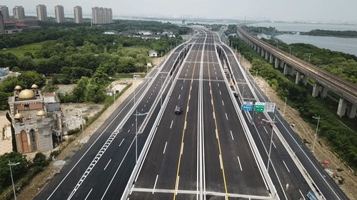 蘇州市中環北線(春申湖路快速化改造)項目西起 S228 互通,穿越陽澄西湖接中環北線一期,貫穿相城區中心城區,連接高新區和園區,路線全長約 16 公里。工程采用全國罕見的“四橋三隧”布局,主線按城市快速路設計,采用雙向六車道標準,設計速度為 80 公里/小時。