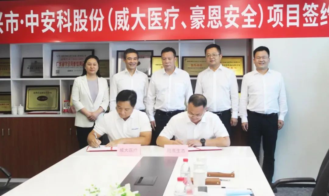 項目合作簽約儀式上,中安科子公司(威大醫療、豪恩安全)分別與宜興市陽羨生態旅游度假區簽訂了新型項目合作協議。