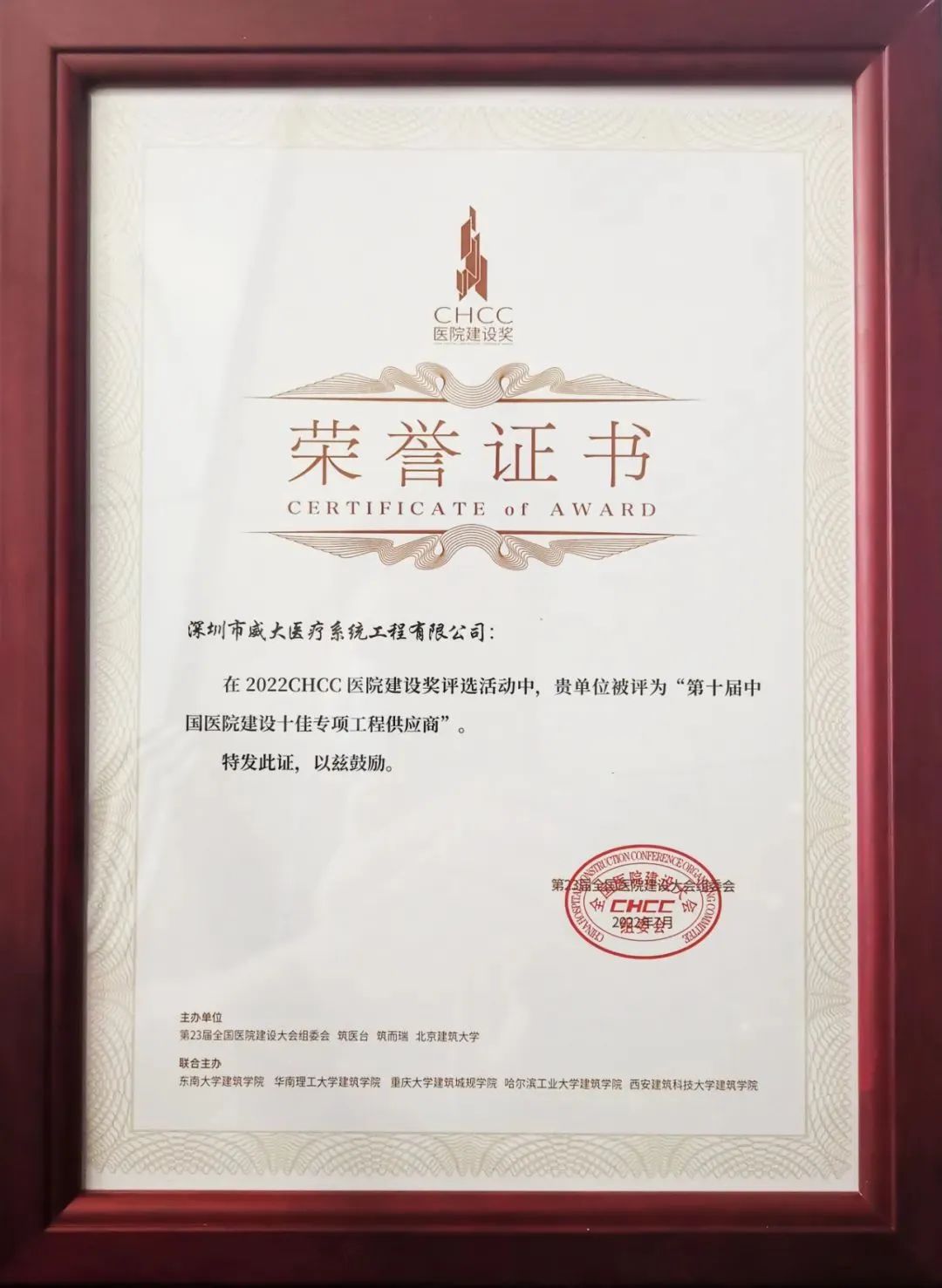 榮譽(yù)代表過去,未來威大醫(yī)療將繼續(xù)以客戶為中心,通過更優(yōu)質(zhì)的專業(yè)服務(wù),為客戶打造一流的精品工程。