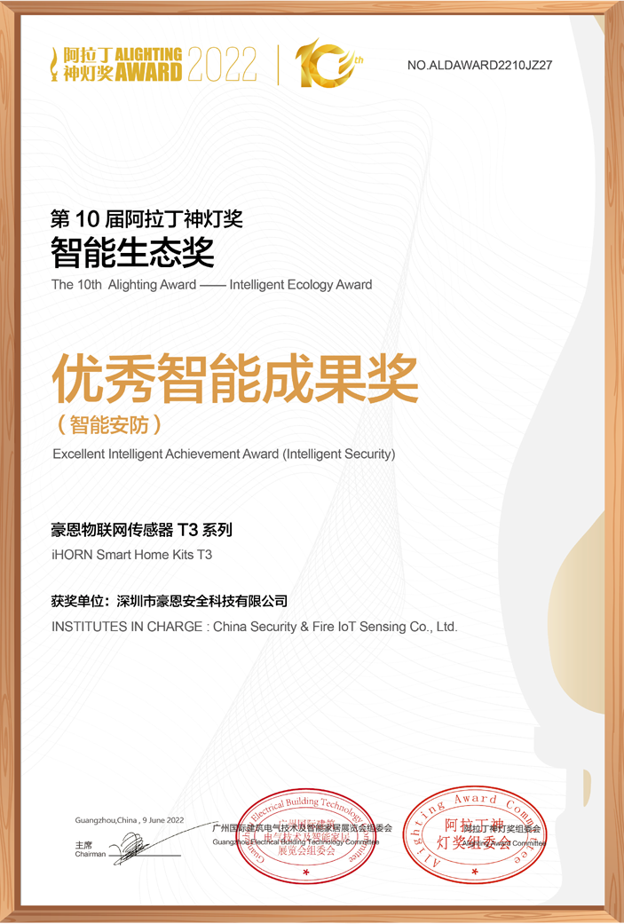 8月4日,豪恩物聯網傳感器T3系列榮獲“2022阿拉丁神燈獎——智能生態獎”此前,T3也曾斬獲德國紅點設計大獎是一套顏值與科技并存、品質與性能齊驅的產品。