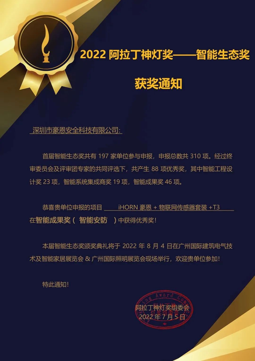 阿拉丁神燈獎,被譽為照明界的“奧斯卡獎”今年首次從照明版塊擴展到智能生態版塊旨在助力科技創新,促進數字化轉型吸引了眾多智能企業廣泛關注和積極參評。