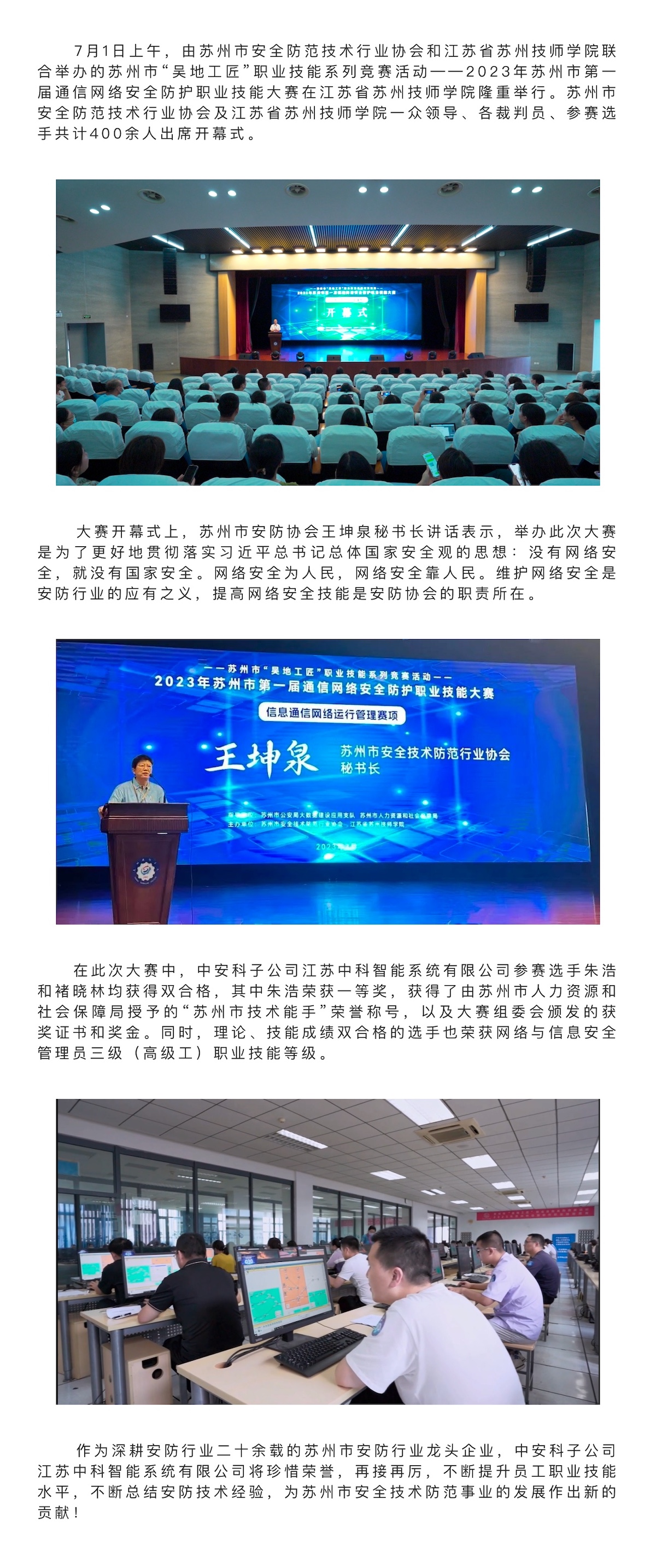 喜報 | 中安科子公司中科智能參賽選手獲第一屆蘇州市通信網絡安全防護職業技能競賽第一名