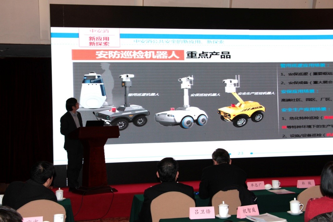 徐濤先生以“公共安全的大數據變革”為報告主題,闡述了中安消在智慧城市、智慧社區、平安城市、安防等重大領域的優秀解決方案,在報告中,徐濤先生重點介紹了中安消技術在行業內率先探索應用的智能安防機器人。安防巡檢機器人在大安防領域的新應用,有效彌補傳統安防的諸多弊端,吸引了現場與會嘉賓的熱切關注。