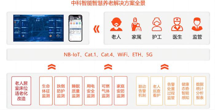 據悉,為助力智慧養老、為老人們打造更溫馨、更智慧的養老生活,中安科子公司江蘇中科智能系統有限公司推出了智慧養老管理平臺。該平臺結合物聯網、大數據、人工智能等技術,可以為老人提供全方位的服務。以智慧養老云平臺為核心、以各類智能設備為基礎,基于IOT物聯感知、AI人工智能、云計算、大數據、5G等前沿技術,建成由監控服務中心、云平臺、移動應用、智能設備等組成的智慧養老監測與服務一張圖,可實現對老人、服務、事件的感知、識別、追蹤,從而打造集智能監測、智能看護、智能聯動的智慧養老一體化系統。