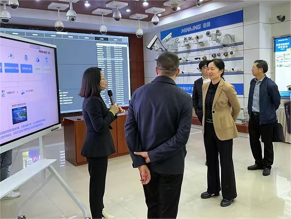 市長盛蕾一行實地察看了明景在數字孿生平臺、電力輸電線路AI算法、電力安監AI算法等核心技術的研發情況,對明景在云計算、大數據分析、AI智能分析等技術成果做出的努力與取得的成績給予了肯定。