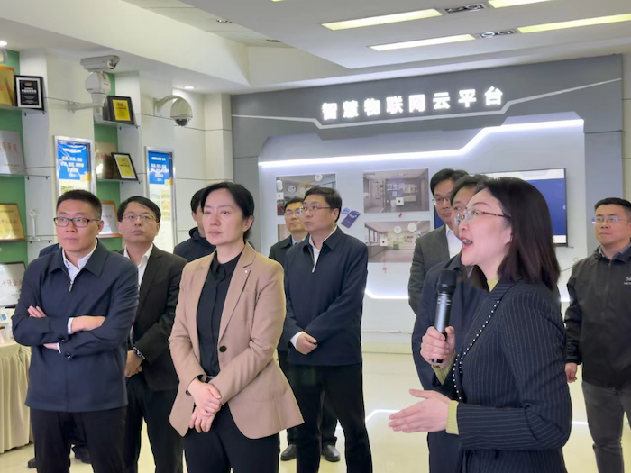 總經理景玉萍向市長盛蕾一行到訪明景表示熱烈歡迎,對常州市政府一直以來給予明景的信任與支持表示感謝,并介紹了公司發展歷程、AI人工智能算法在數智孿生平臺軟件、電力輸電線路在線監測、電力安監行業及能源行業的實際應用。