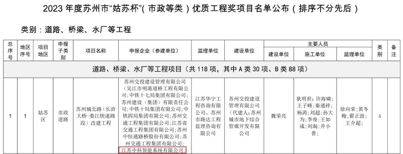 中安科子公司江蘇中科智能參建的四個項目通過評審,榮獲2023年蘇州市“姑蘇杯”優質工程獎: