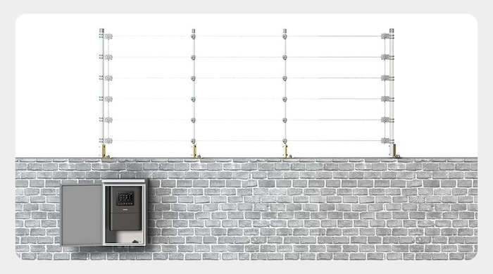 脈沖電子圍欄通常沿著圍墻安裝,區別于局限于視距和直線及平坦區域環境的紅外線、微波墻等防范系統。電子圍欄全天候工作,穩定可靠,可以依據地形任意架設,不受地形高低和邊界曲折形狀的限制,也不受氣候、植物、小動物等因素影響。